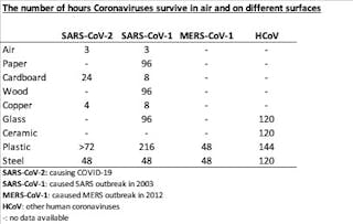 Two recent studies have investigated how long coronaviruses survive on different surfaces. The research looked at a number of different viruses including SARS-CoV-2 – the coronavirus that has caused COVID-19. And it found that the survival times varied according to the type of surface.